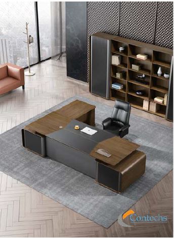 | BUREAU DIRECTIONNEL. Un ensemble mobilier haut de gamme pour Ministres et hautes autorités. 1/ Le bureau : robuste et solide, son plateau est composé de panneaux mélaminés de 60 mm d’épaisseur, traités anti rayures et antireflets, mais aussi résistant aux chocs grâce à ses chants ABS et ses chants latéraux en aluminium de 1,5 mm d’épaisseur. 3 qualités dans un produit, et davantage ! les caractéristiques ci-après : Plaquage en bois massif avec finition Piètement en placage bois massif traité avec ébénisterie en finition Passage câble, pour les téléphonique, internet et autres . Dimensions : longueur 2,20cm, largeur 1,00 Retour de 2,10m comportant un petit meuble bas à 2 battants vos documents seront en sécurité grâce à son verrouillage centralisé. « 01 sous-main en cuir intégré, Dimension BUREAU : 2800X2100X750 |